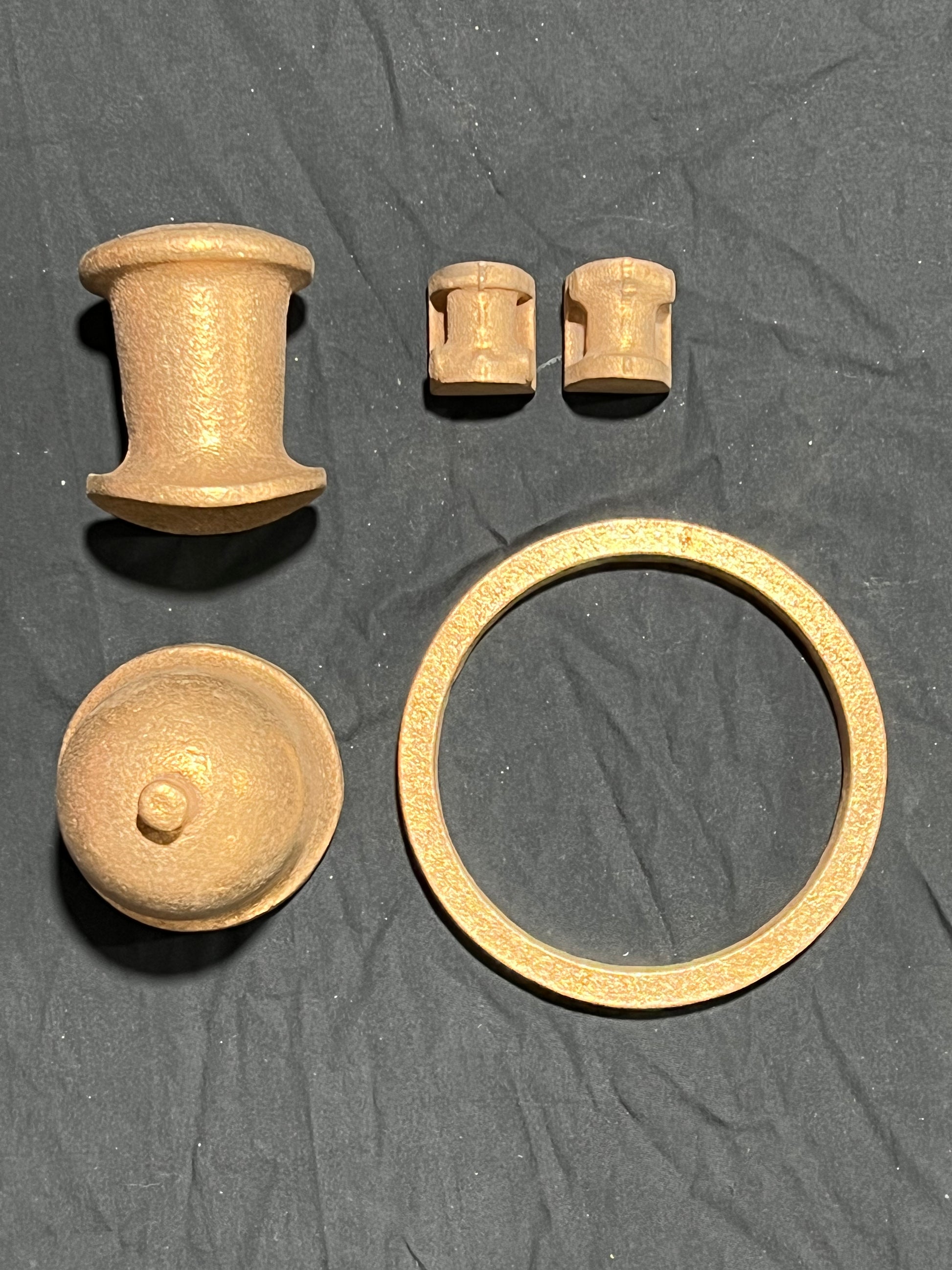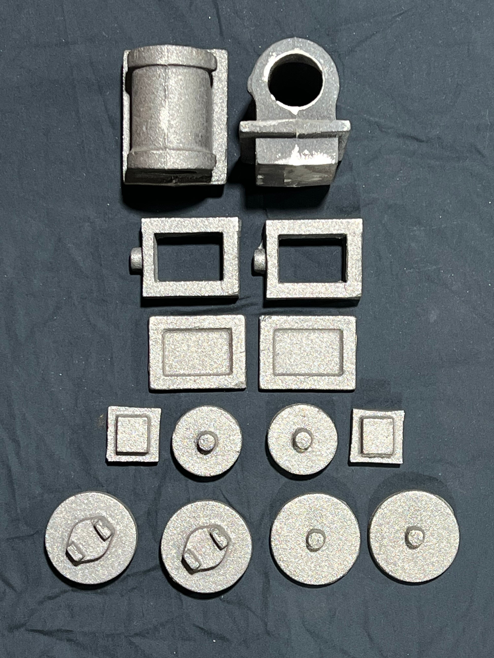 Valve Buckle (2) Smokebox Door (1) Smokebox Door Ring (1) Dome Bush (1) Dome Flange (1) Dome Top (1) Regulator Body (1) Regulator Bush (1) Regulator Stuffing Box (1) Steam Pipe Bush (1) Water Gauge Bush (2) Bogie Centre Bearing (2) Bogie Axlebox (1 Bar) Valve Eccentric Straps (4) Pump Eccentric Strap (1) Pump Body (1) Chimney (1) Dome Cover (1) Brake Cylinder (1) Smokebox Back Ring (1) Sand Box (1LH and 1RH)